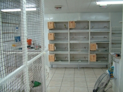 The new aviary measures 7 meter by 6 meter. There are 4 flights. Three flights measure 3.5 meter by 1.3 meters while a smaller flight for young birds and show preparation measures 0.8 meters by 2.6 meters. The breeding room has about 60 breeding cages.