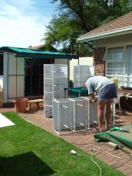 Breeding cages being fitted and the stands used to lift the cages off the floor.