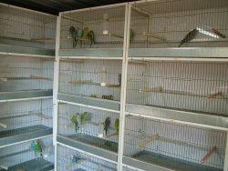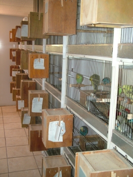 From 1996 to 2008 we used Canary double breeders as our breeding cages. In 2008 we changed the breeding cages to those displayed below and have now custome build an additional 20 breeding cages.