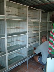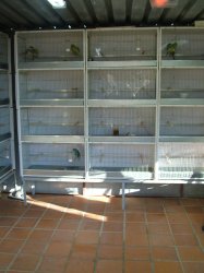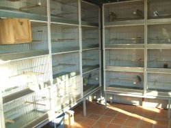 Both banks of breeding cages are modulare which helps as you can bolt a new set of breeding cages (4) to the end if required. The 36 breeding cage bank is seperated by boards. This effectively means that if we require we could have four by 7 metre long cages to house show birds or babies. This can be achieved by removing all nest boxes and boards which divide the breeding cages.