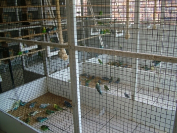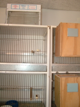 Picture on the left: The 20 bank breeding cages looking towards the main entrance.