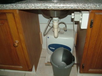 Hot water is provided via a unit installed below the counter as can be seen in the picture on the left.